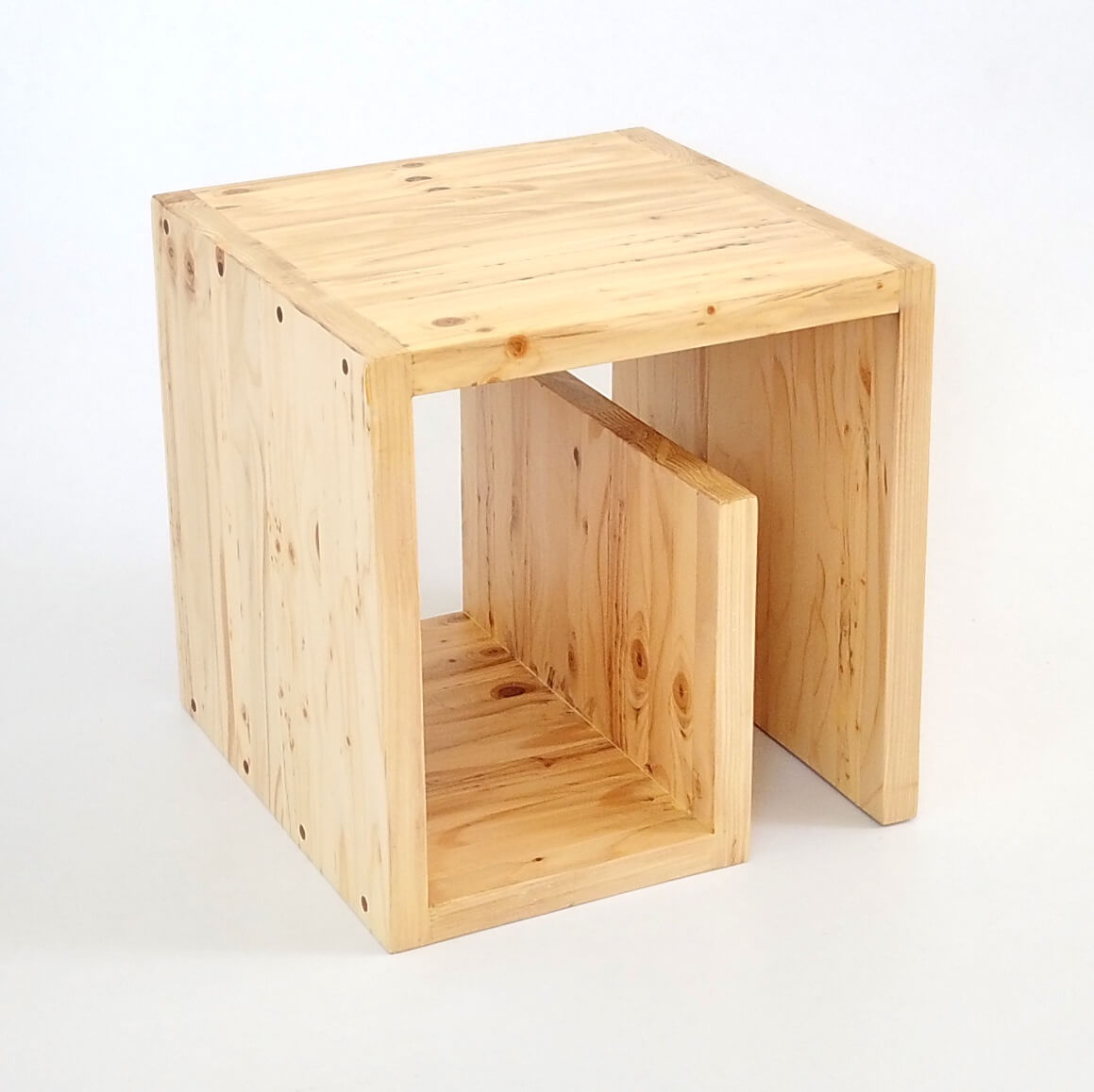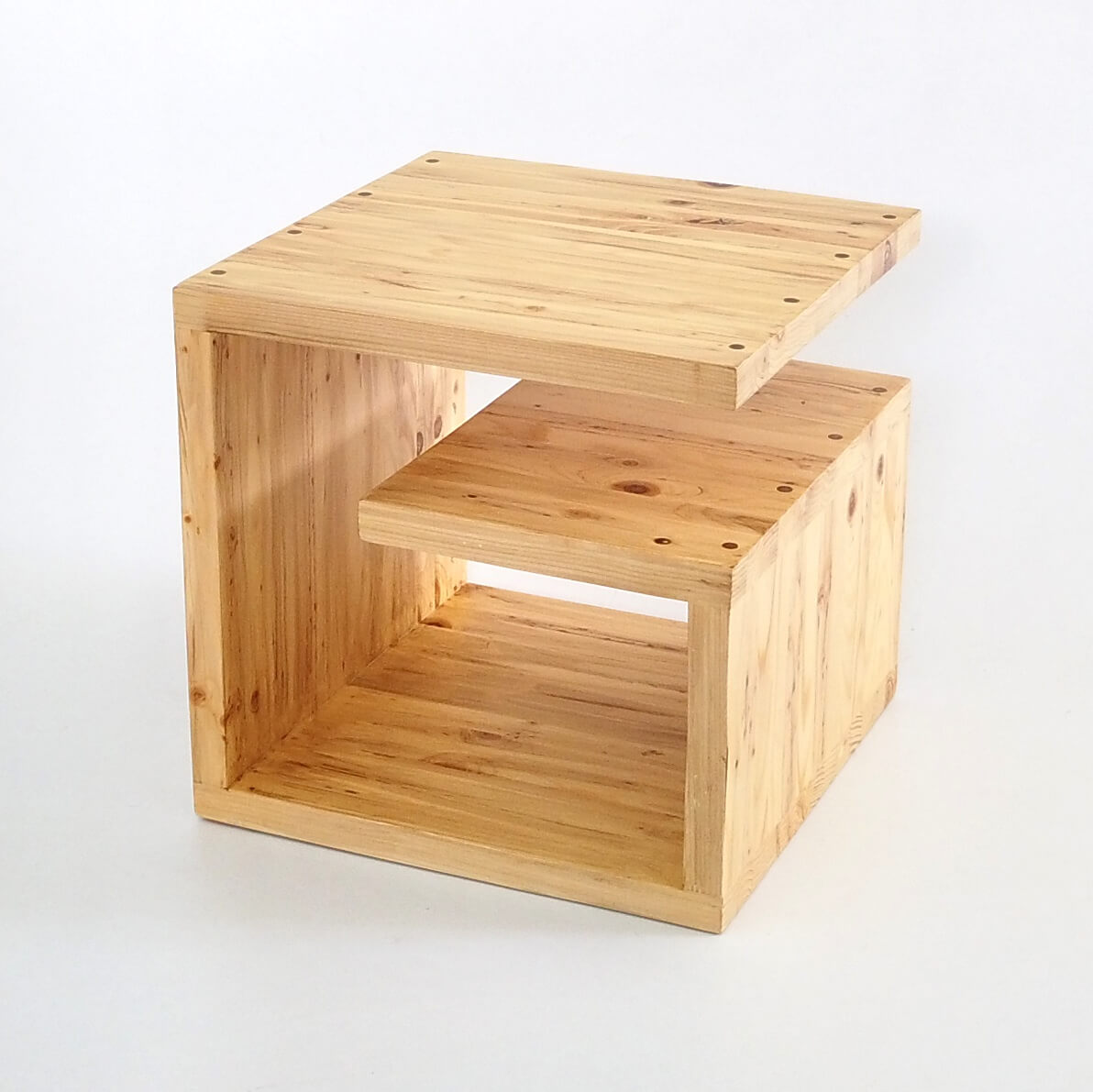 The Gabrio Side Table. Rustic yet modern. Multi-faceted. Can be set in different ways. Made from all solid pinewood, all skillfully handcrafted and naturally finished to fit a variety of interiors - from minimalist to boho to rustic. See also Gabrio's other "tumbling" brother side tables- Manuel and Simeon Side Tables.