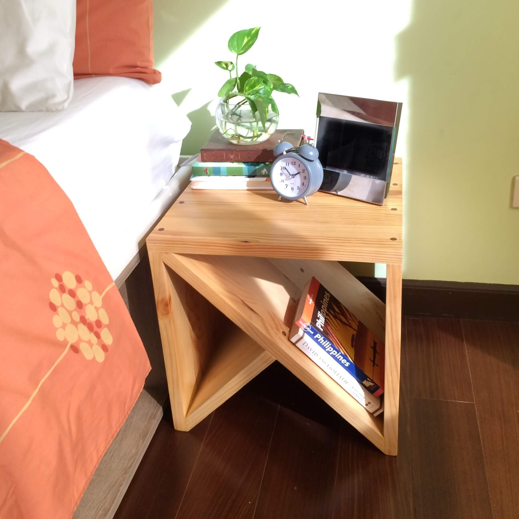 The Manuel Side Table. Rustic with modern undertone, thanks to its geometrical lines. Made from all solid pinewood, all skillfully handcrafted and naturally finished to fit a variety of interiors - from minimalist to boho to rustic. See also Manuel's other "tumbling" brother side tables - Gabrio and Simeon Side Tables.