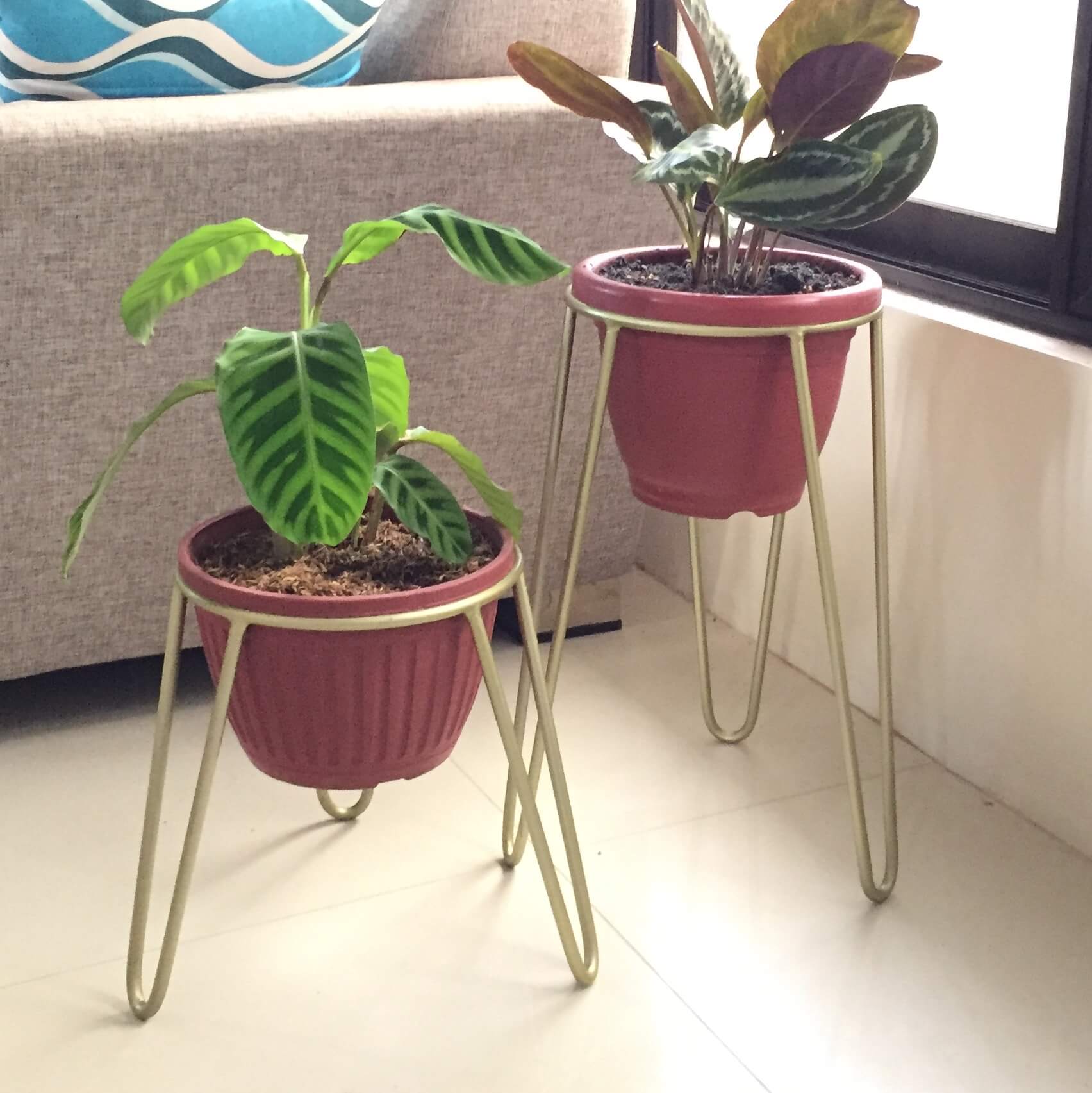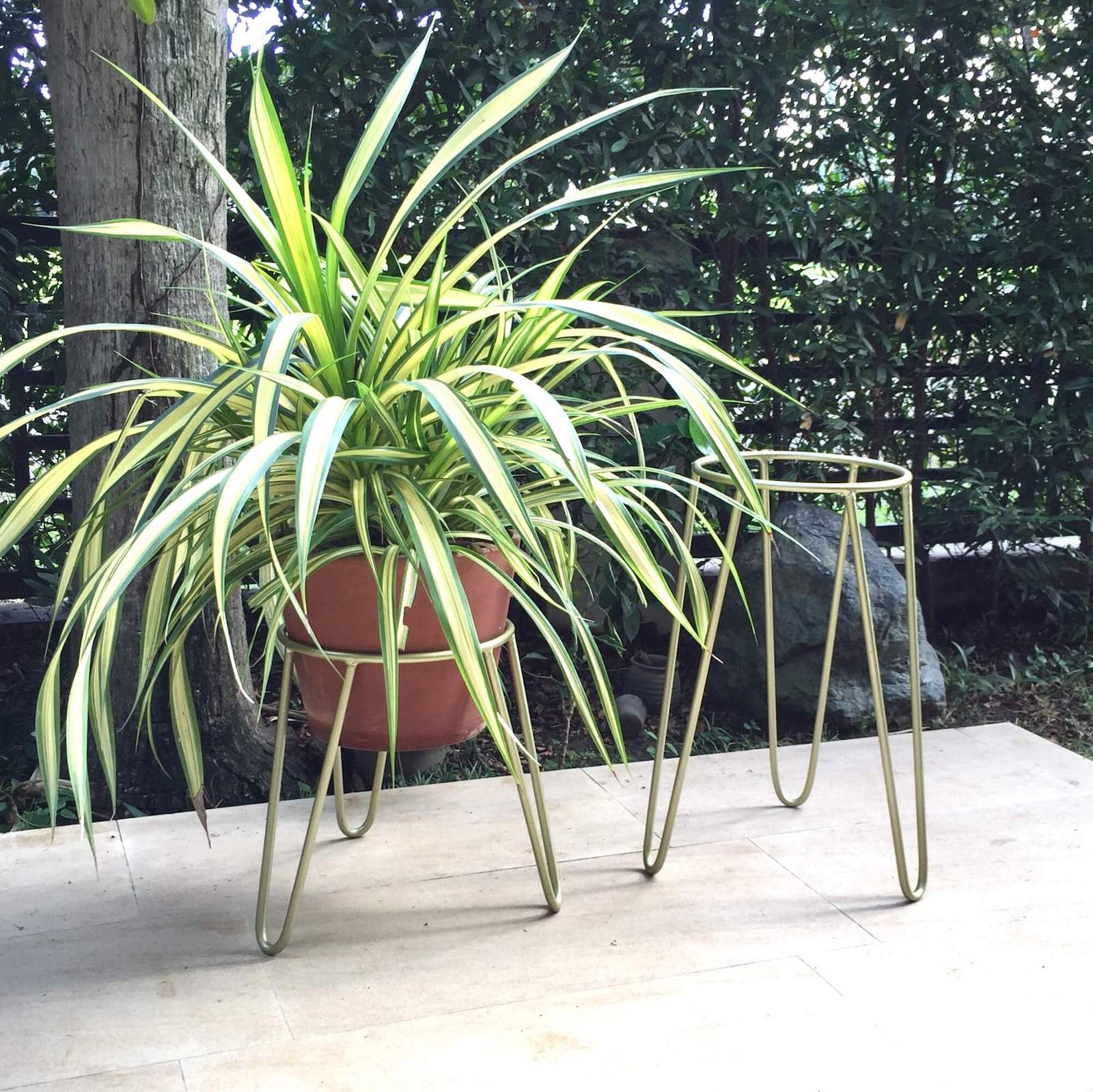 Elegant plant stands in light-Gold colored hair-pin metal legs, when you want to elevate your plants, literally and figuratively.