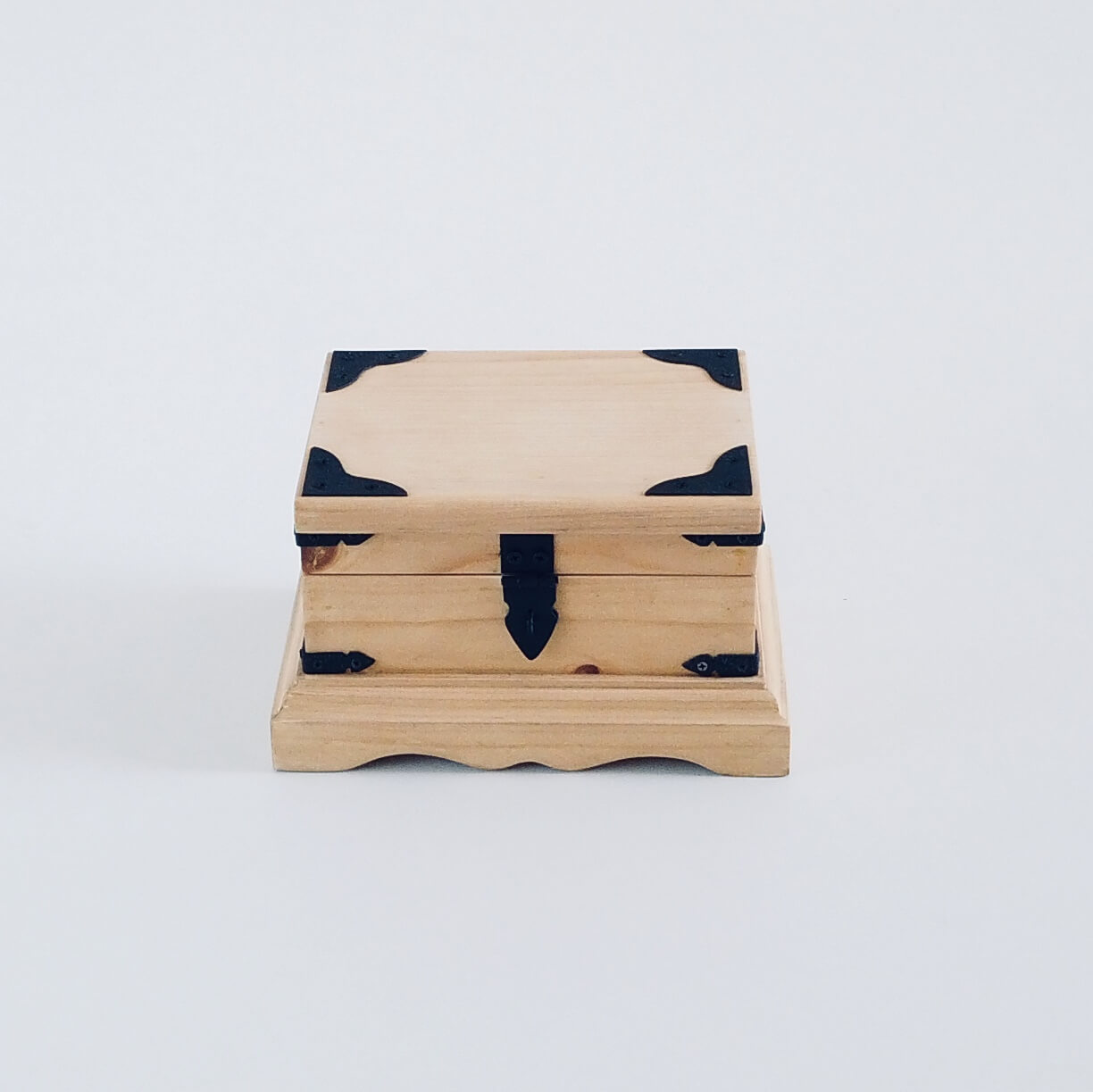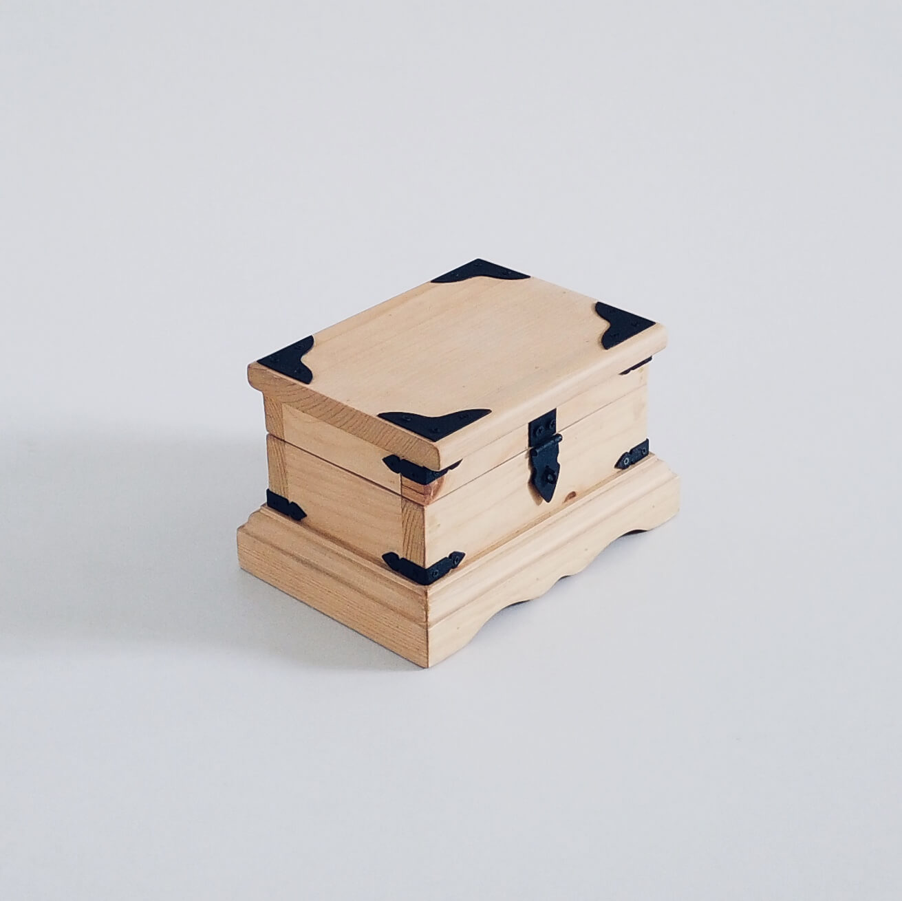 The Rustic Keepsake Box made of solid pine wood, with hand forged-metal accents. A wooden storage box, memory box, or a jewelry box naturally finished pine wood and beautifully handcrafted. Can be an accent piece or an Objet, as the French would say. Oui? ;) Choose from 2 other designs - the-second and the-third.