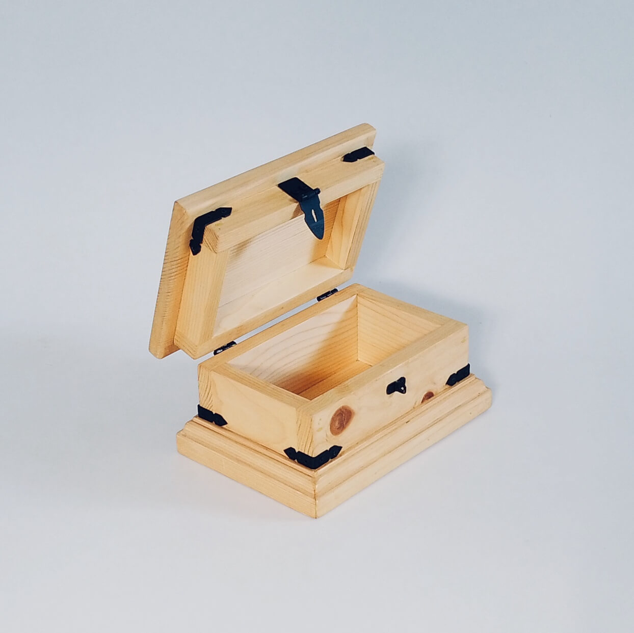The Rustic Keepsake Box made of solid pine wood, with hand forged-metal accents. A wooden storage box, memory box, or a jewelry box naturally finished pine wood and beautifully handcrafted. Can be an accent piece or an Objet, as the French would say. Oui? ;) Choose from 2 other designs - the-first and the-second.